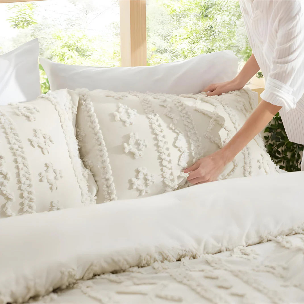 🛏️ 1 housse de couette + 2 taies d’oreiller, soigneusement tissées pour garantir un confort optimal et une finition impeccable.